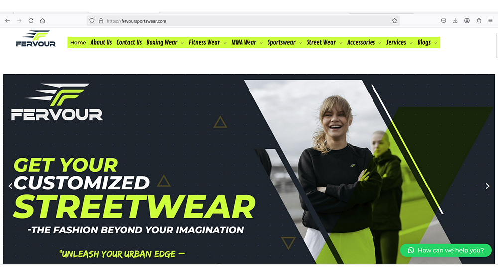 Fervour Sportswear Website